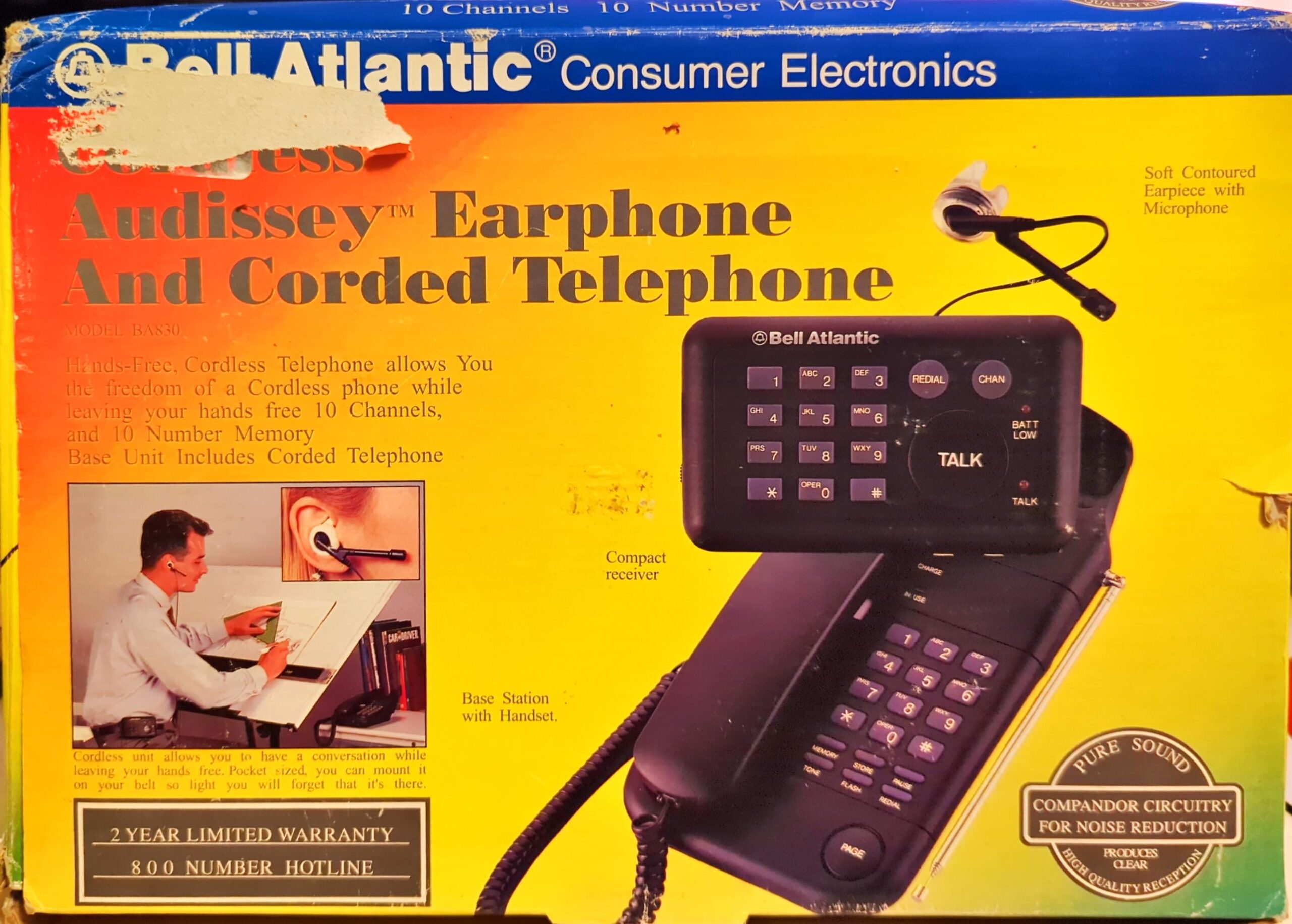 Bell Atlantic Audissey Model BA830 Earphone and Corded Telephone